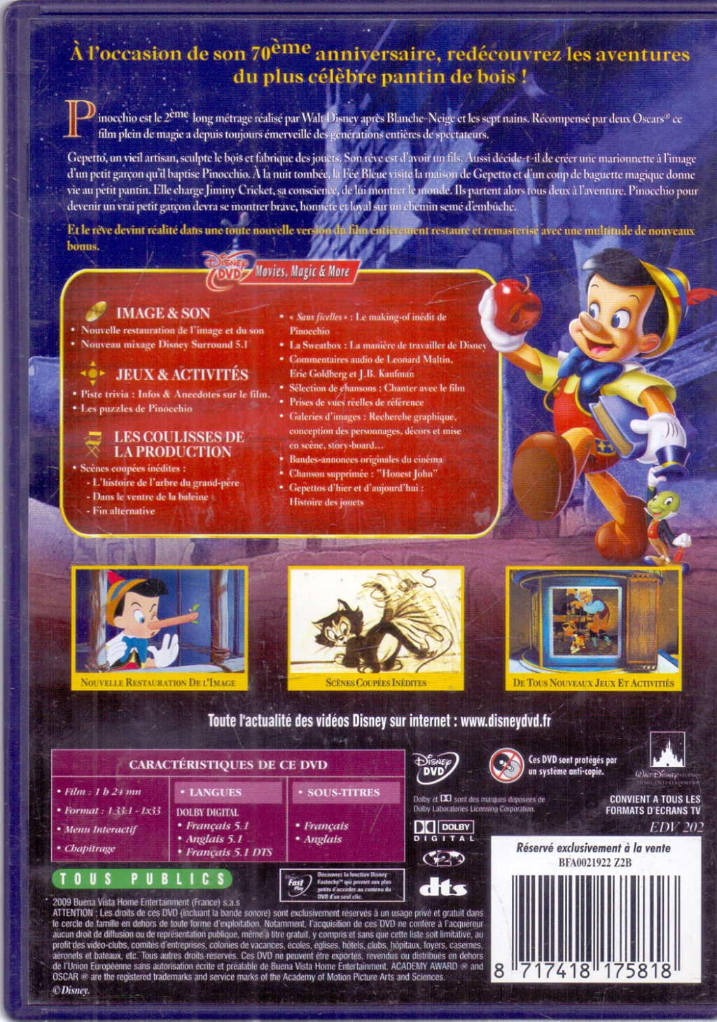 DVD PINOCCHIO - 70ÈME ANNIVERSAIRE